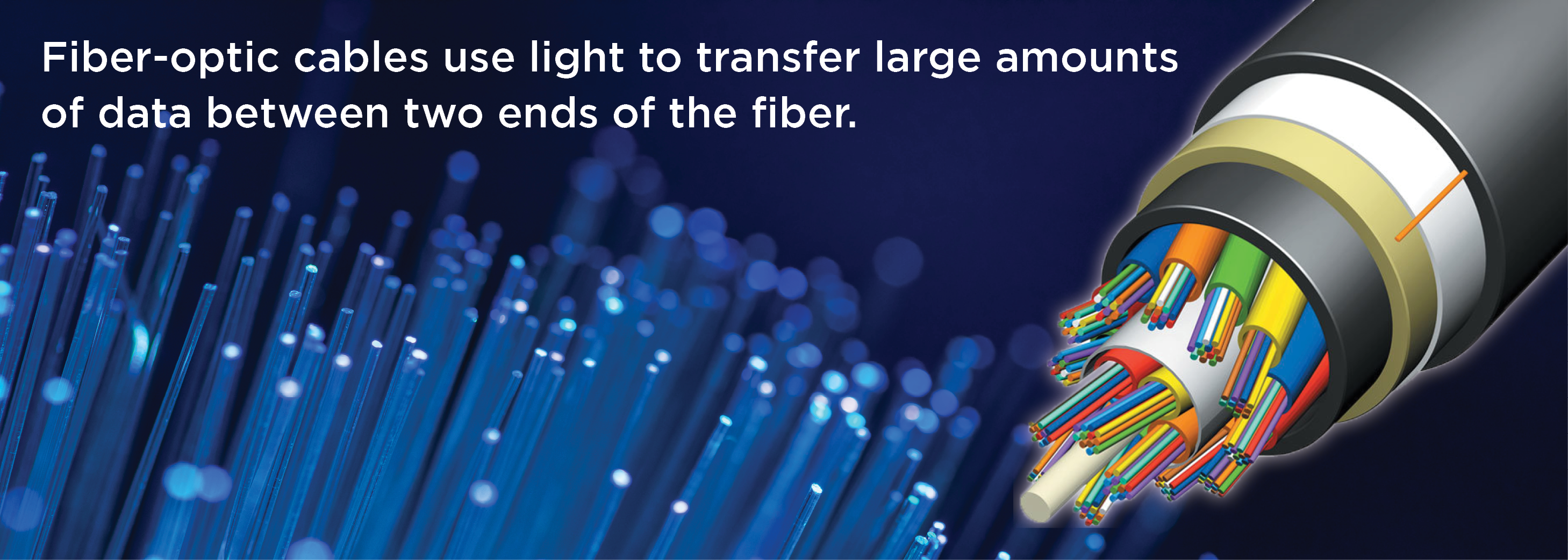 Fiber-optic cables consist of a glass fiber core thinner than a human hair and are used to transmit light between two ends of the fiber. The data from cell phones, computers and traffic signals is turned into binary code and sent as light down fiber optics. Fibers can be used to transmit data over long distances with a high bandwidth. Copper cables previously used for communication purposes are being replaced with fiber-optic cables because of their faster data transmission speed, higher bandwidth and reduced potential for external magnetic and electronic interference. Fiber optics also have better data security as there is no side entrance for data to be intercepted.